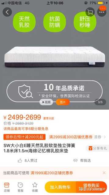 在床垫的选择上,我确实下了一番功夫,我的预算在2000左右,希望花2000块钱买一个质量好的床垫,后来在比较下,我选择了sw家的大小白床垫,这是一家非常高逼格的店铺。而选择它的原因,最主要的原因是因为它有双层凝胶海绵,里边有非常多的凝胶因子,能够有效的排气排湿。因为我们在南方,所以天气总是潮湿,有一个好的床垫就不会总是觉得床上湿漉漉的,睡起来也会非常的舒服。