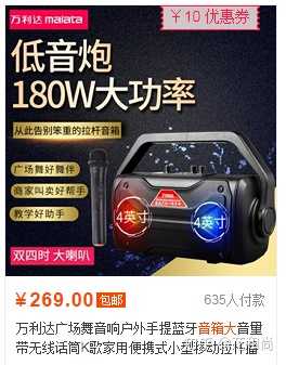 比如说你的关键词或大流量词是大功率音箱,那你是不是应该直接在主图上表明你这个音箱的功率有多大,可以用数值表达比如达到180w大功率,但功率这个大多数人可能没有概念,你也可以表达成2公里外都听得清或者火车站通用音箱,这样别人就对你这个音箱是大功率的确信无疑了。