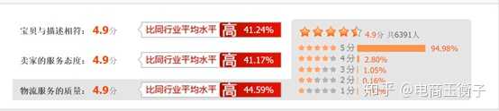 和单品的评价一样,店铺的评分情况也会影响到单品的转化数据,店铺的评分有三项:宝贝描述相符 卖家服务态度 物流服务质量。要是店铺三项是红色,那么证明高于行业均值的,如果低于均值明显是店铺各项指标存在问题是不利于单品的转化率的。