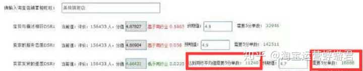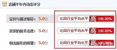 店铺的DSR对比同行的高低,在评分的描述里就能看出来: