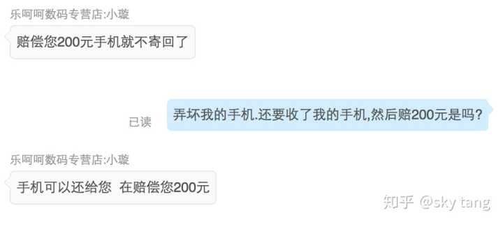 也就是说我的手机从电池爆了,用不了-不能修-赔200元-能修-要加钱-寄回用不了. 商家连200元也省了.