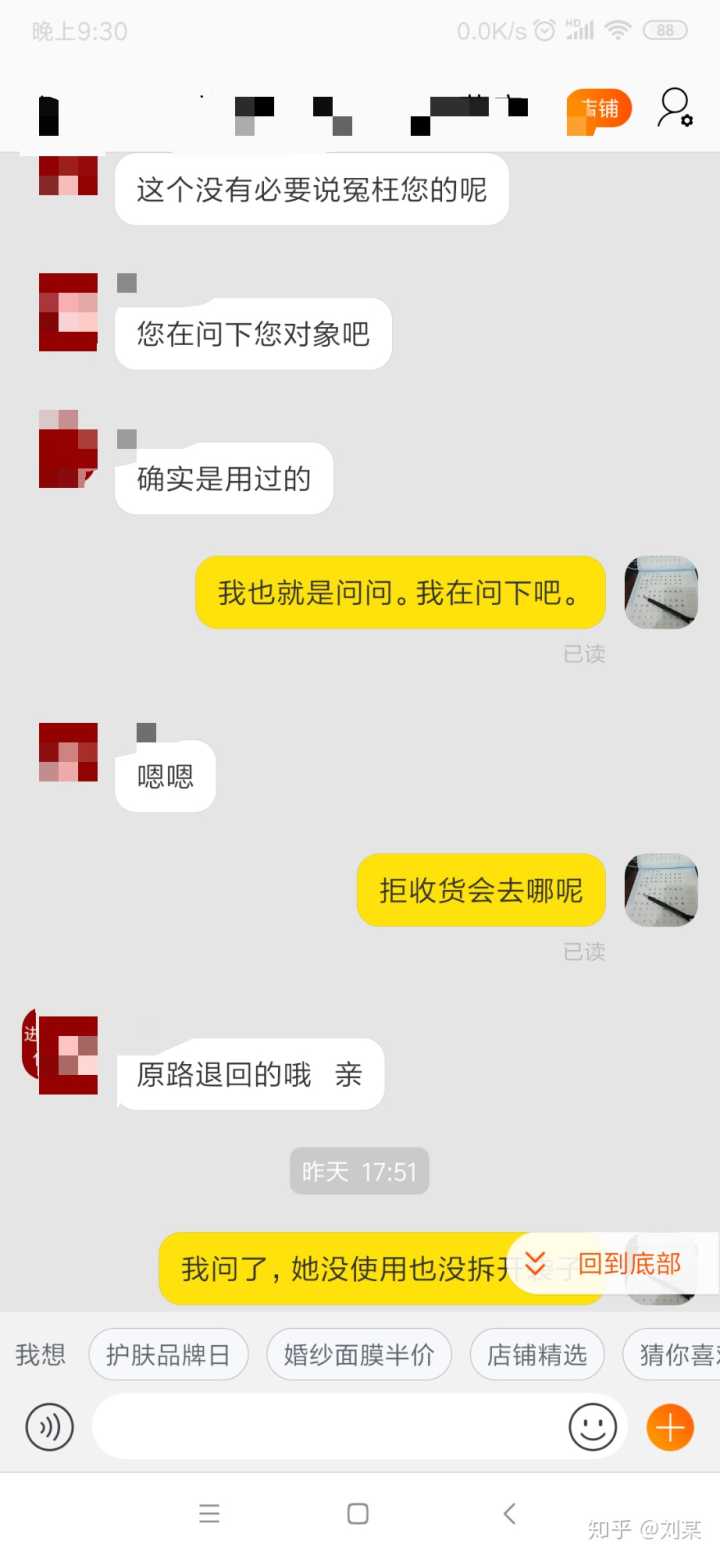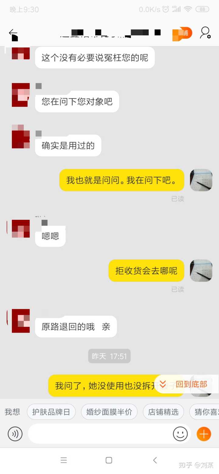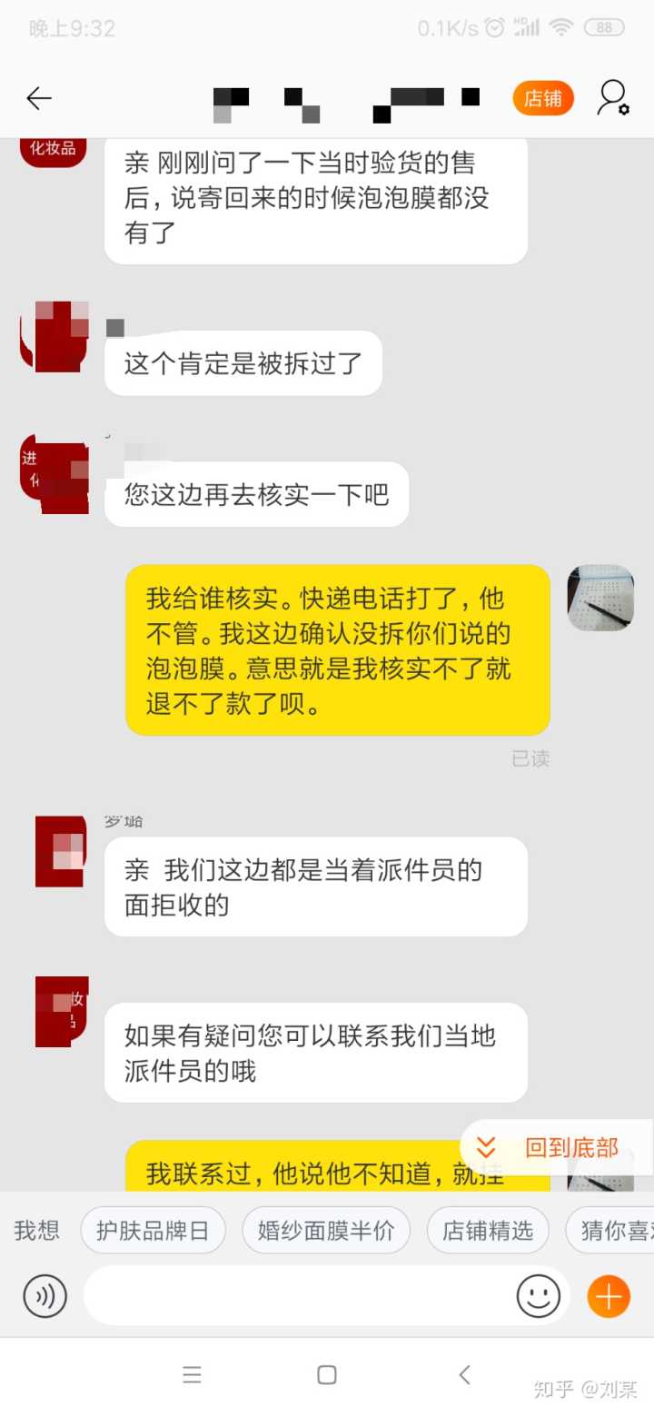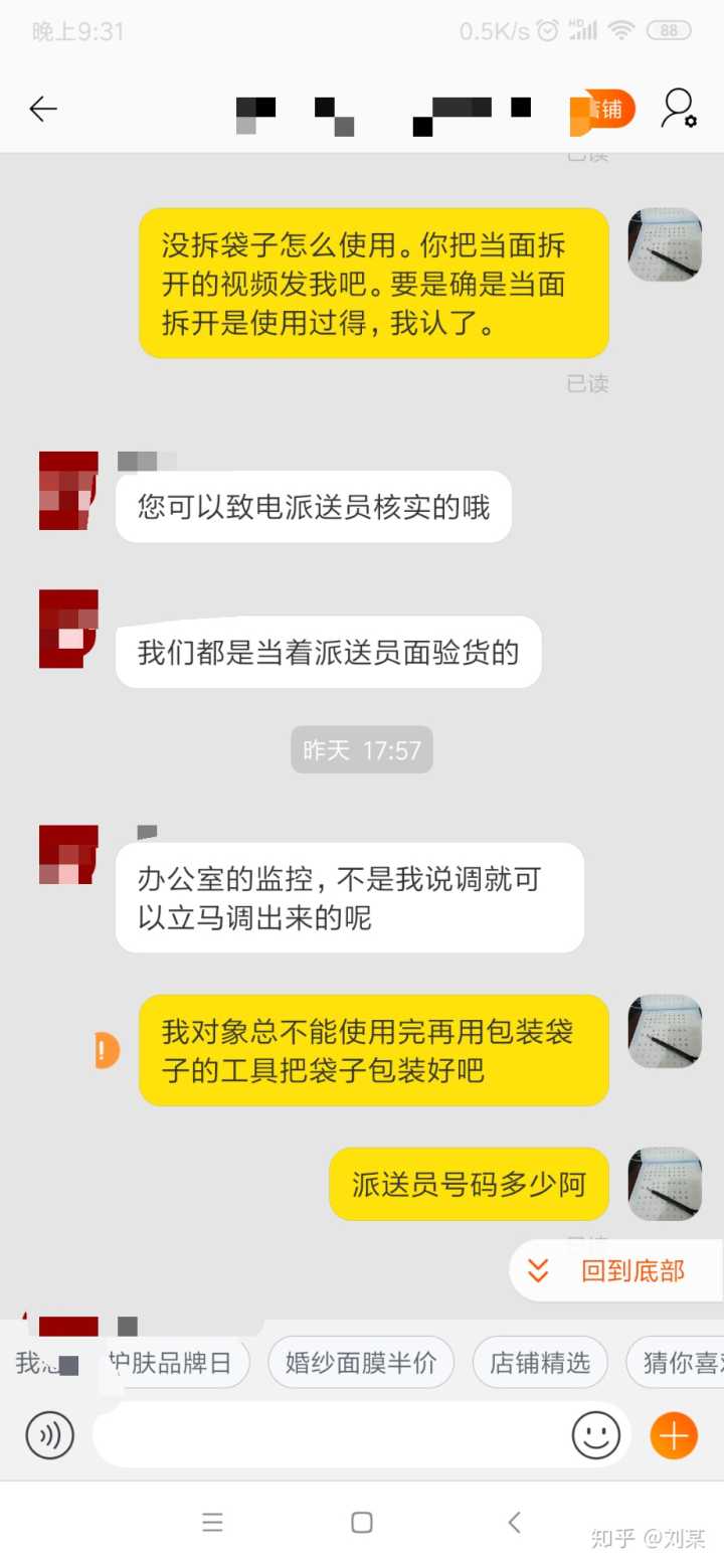 我联系过天猫客服,给我的回复是需要取得快递红章证明才能进行天猫客服维权(这是个牛逼的东西,牛逼到你去试试就知道多牛逼了)如愿以偿我去寄快递的地方(小县城只能自己去寄快递)里面的人说他没有这个红章,需要我去县城的总部去盖。我好话说尽ok人家说没有,我只能去他们总部去问了。找了俩个小时终于在工业园区找到了。又是如愿以偿(我到了后说我在你们这快递寄个东西,是退货我没打开过但是卖家已使用过拒收了,所以我想请你们帮帮忙看看能不能帮忙盖个红章证明下快递在运送过程中未打开使用)刚说完快递总部负责人,头都没抬直接说我们公司有规定不给客户做任何是否使用的证明而且我们也没法证明你是否使用。所以没有办法帮你。我立马给天猫客服预约来电,说无法取得红章证明,客服说了不取得证明那你维权的可能性可能很小了(意思就是不可能维权了你没办法证明你未使用也没办法证明卖家给你发的是否是正品或者已使用)这时我就知道这个红章证明是个什么牛逼的存在了。然后我说卖家拒收的时候有监控能不能提供一下。卖家拒绝向我提供(上面图片有我沟通要监控的聊天记录)天猫客服说无法强制要求卖家提供监控。
