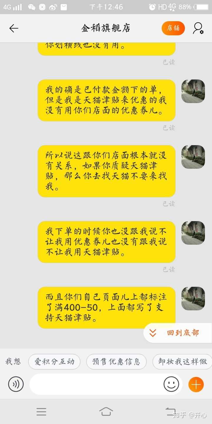 我用的是天猫津贴,满400减50的,结果客服跟我说不能用优惠券,可是下单之前,以及页面都没有显示,我这个火,直冲脑门 无数白眼送给金稻旗舰店 ,客服还不理我,回复的很慢,我怕过多,就没有全部截图,有的时间也没有截上,大概是4天吧,幸亏别的快递都是那么的让人开心,不然我可能原地爆炸☹️