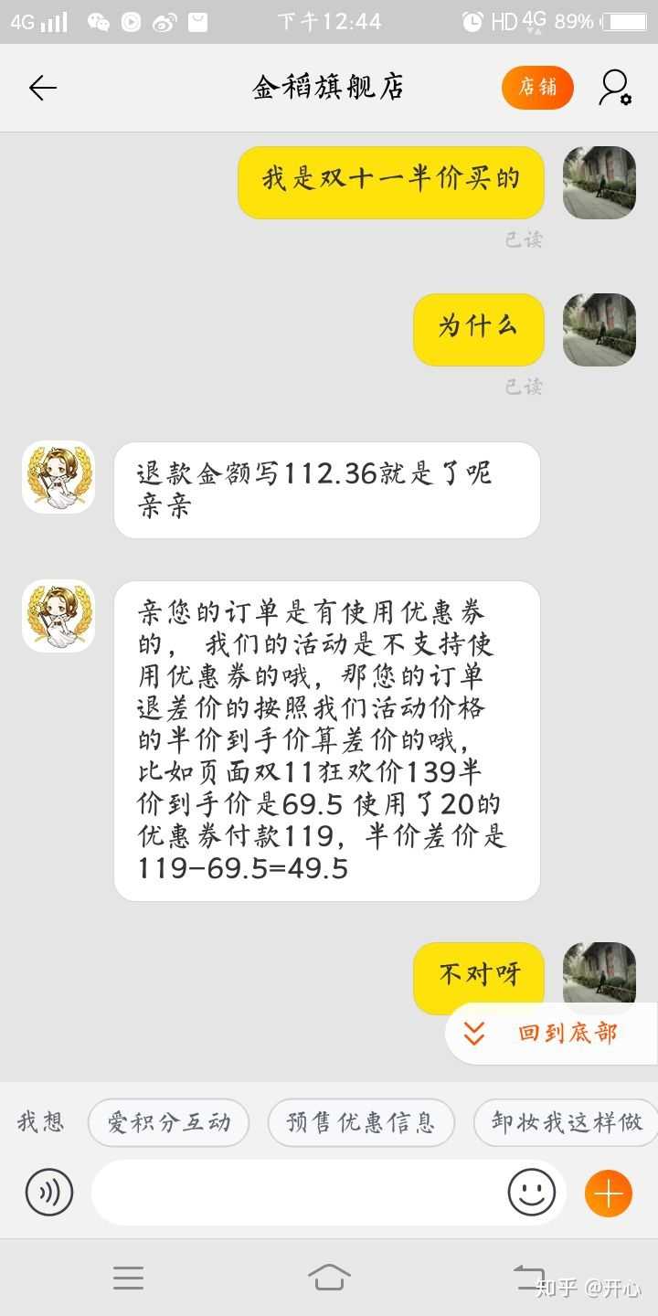 如下图,为金稻旗舰店的客服承诺,重要凭证截图。(11.7的咨询截图,他们之前已经标注半价,可是我没有截图,我不知道后期会出现维权问题 )
