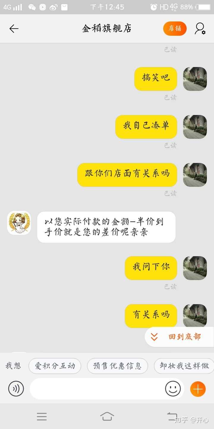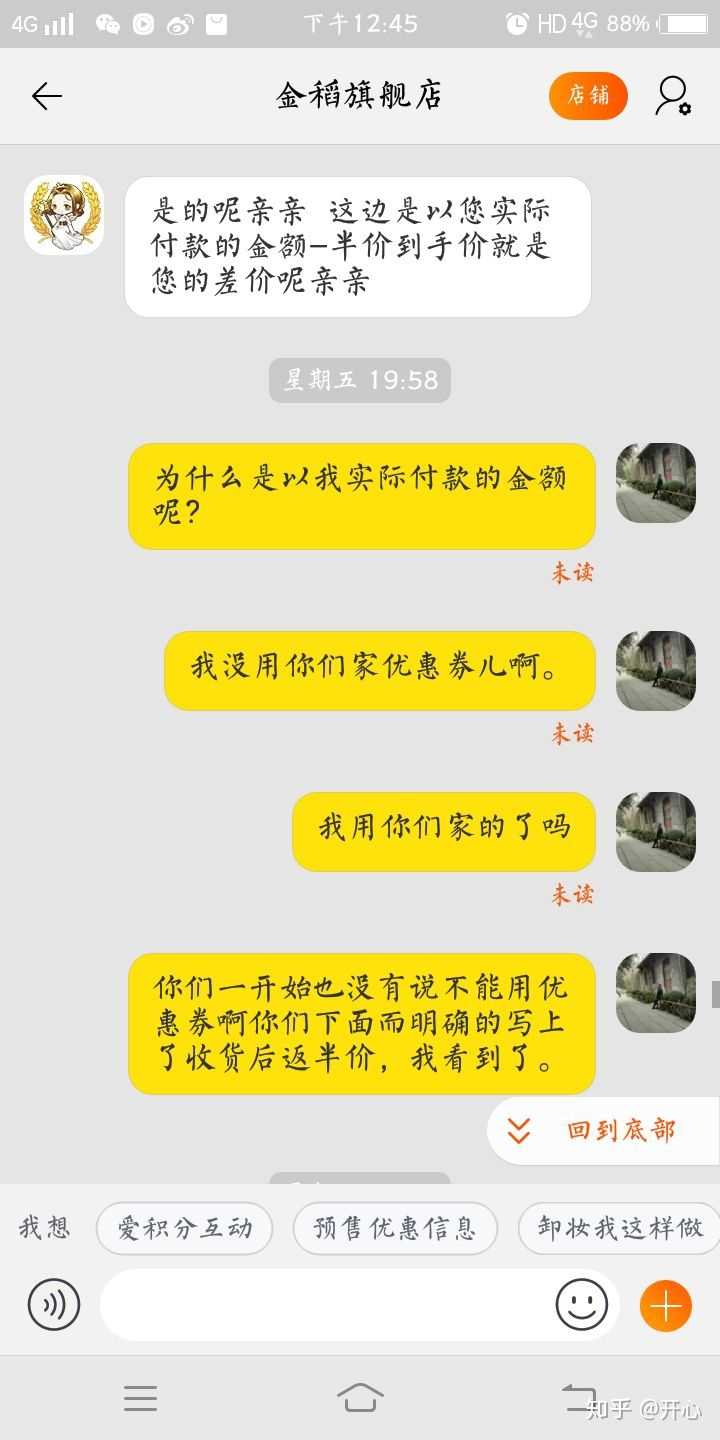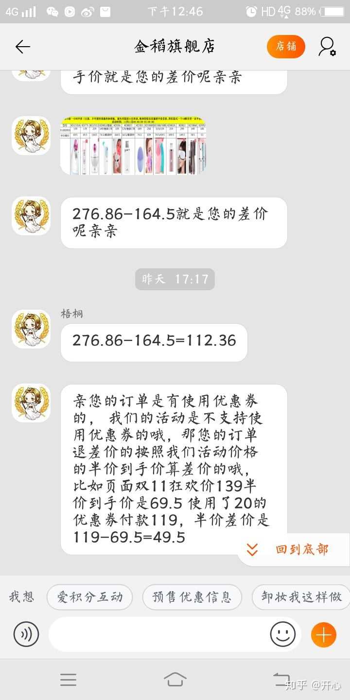 好啦,下面是客服的精彩表演 多图预警。(图片是收获之后和客服问返差价的截图)