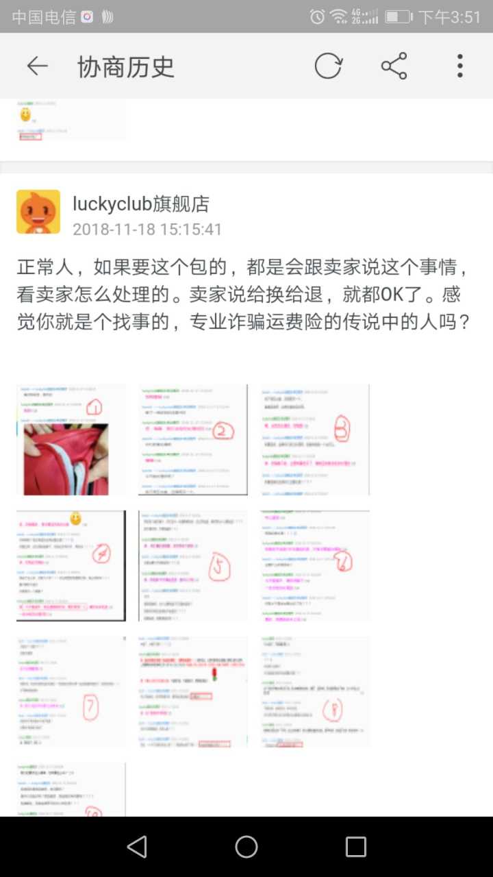 这个是我维权的图片。从最低开始看,图片比较长,我一开始申请了退款,按照电话客服说的,然后卖家拒绝了,找到我的旺旺又跟我说,我的错了,咋的咋的,我才不管呢(傲娇脸 ),我就点击客服介入,那个图片没有截图,不过申请售后或者退款都可以看到吧。