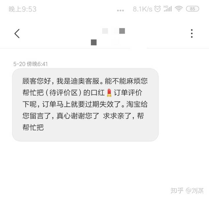 这时我收到快递已经俩三天,拆开了快递包装盒把里面的精美的礼物盒给装好毕竟送人(我送人总不能把口红盒都拆开看看是否完好吧)。这时我还没点击收货,却收到了卖家的短信,我想今个就送人了而且卖家这么多粉丝和销售量能有什么问题我想都没想就给好评加文字回复。喜欢的人说贵重我们就直接申请退货和去快递公司寄件了。