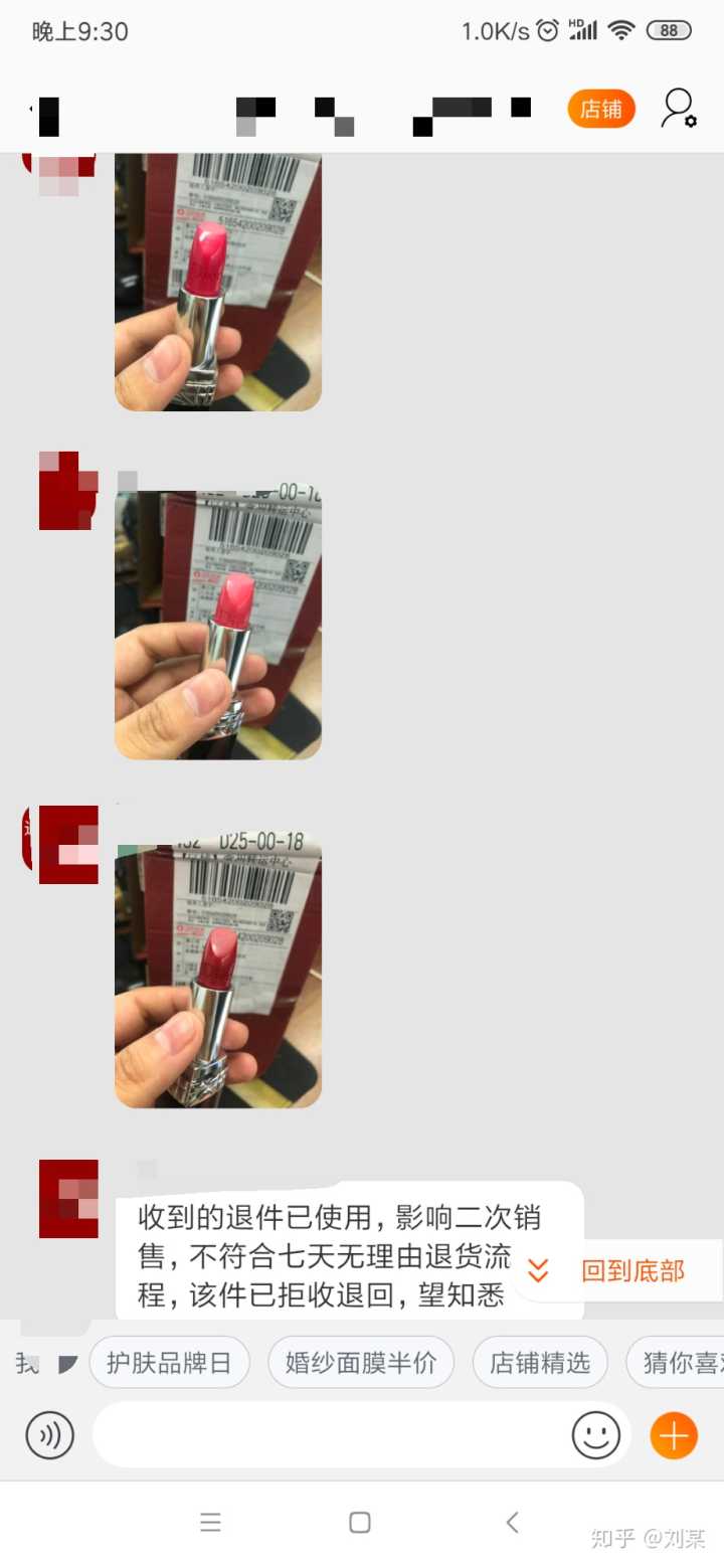 首先我先说下事情的开始,520我打算给喜欢的人(之前是女朋友后来由于有些问题我们解除了情侣关系,保持着常联系和常见面的朋友关系)送口红,然后我就去天猫上找销量高,好评高的店去买了三只套装的牌子口红。但是520送的时候我喜欢的人觉得我送的礼物太贵重她没法接受,于是就申请退款。但是却被卖家说有明显使用痕迹,影响二次销售为由,拒绝退款。