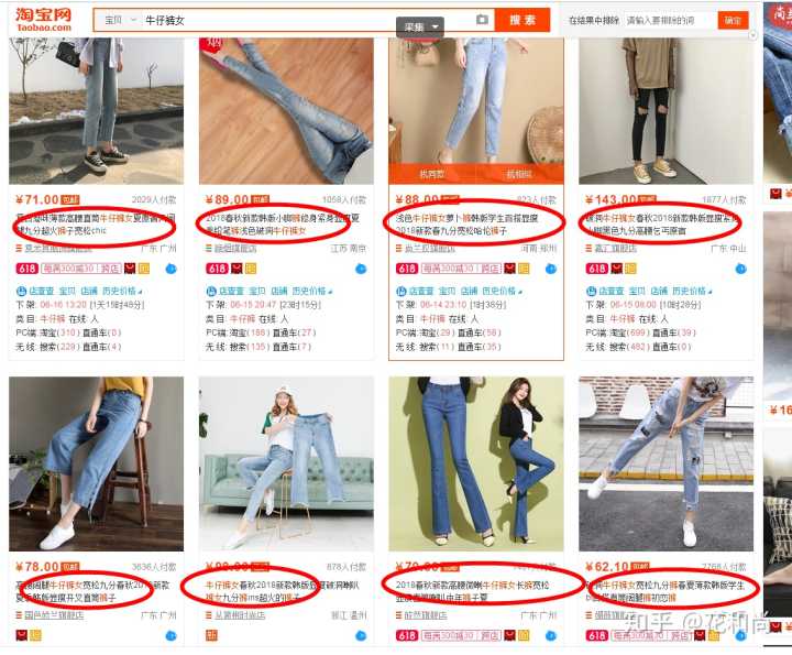 标题是我们获得产品排名,获得展现的基础。我们只能有一个好的标题才会有机会获得展现。举个很简单的例子。如果你在淘宝搜索栏中搜索“牛仔裤女”