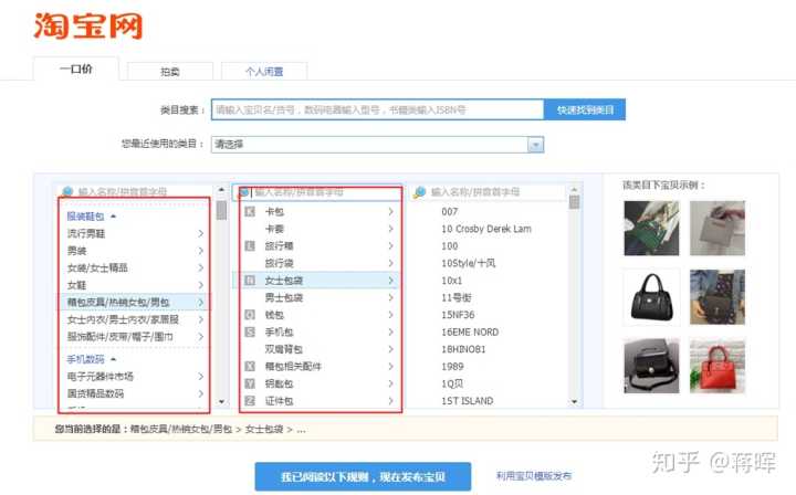 第二个方法,在我们发布宝贝的时候,首先需要选择类目,我们就可以在选择类目的时候去看,这个淘宝到底有哪些类目。