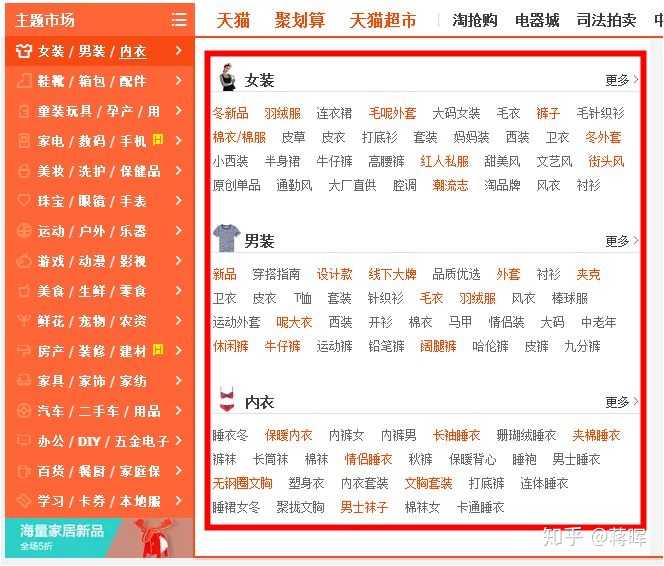 方法就是在淘宝的首页,在电脑端的首页,找到主题市场,然后在主题市场里面有很多的一级类目,点到一级类目的右边会有会有更加细分的二级类目,比如说有女装,有男装,有内衣。