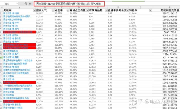 我给大家说一下我们为什么要做这个表格,一个新品上架我们是不是想要快速的去获取放客?那么我们是不是首先要去做关键词?就拿男士T恤这个词来说我们新品通过这个词来找我们的宝贝是不是很吃力想要通过他获得流量是不是非常困难?那么我们有什么办法呢?