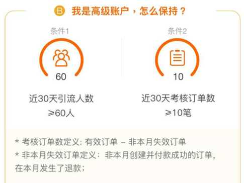 答:在账户考核期(每月1日),完成上个自然月或者近30天高级的要求: