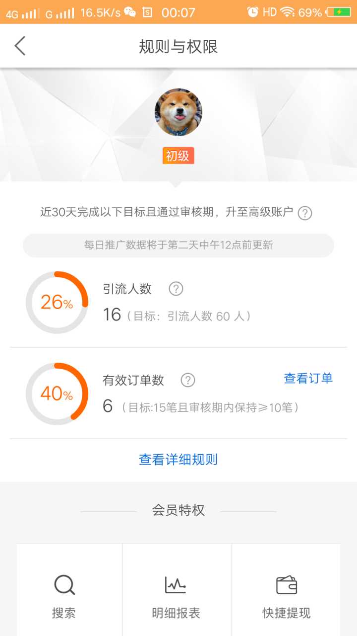 自从淘宝联盟app升级以来,增加了很多限制,就比如对初级账户隐藏了高佣计划,需要升级到高级账户才能查看,那么只需要了解一下升级规则就可以了,具体是这样的: