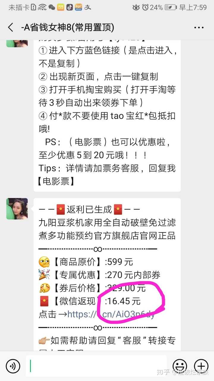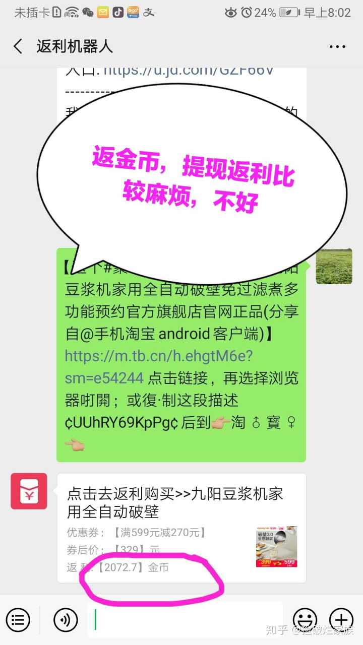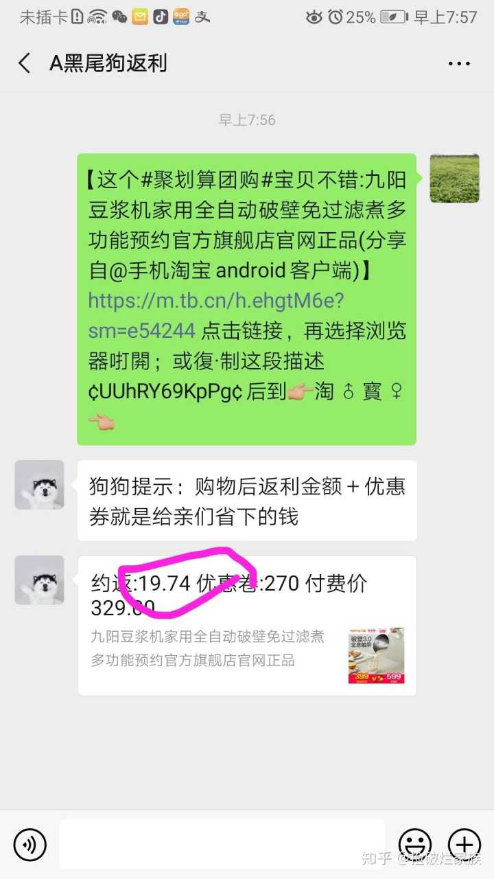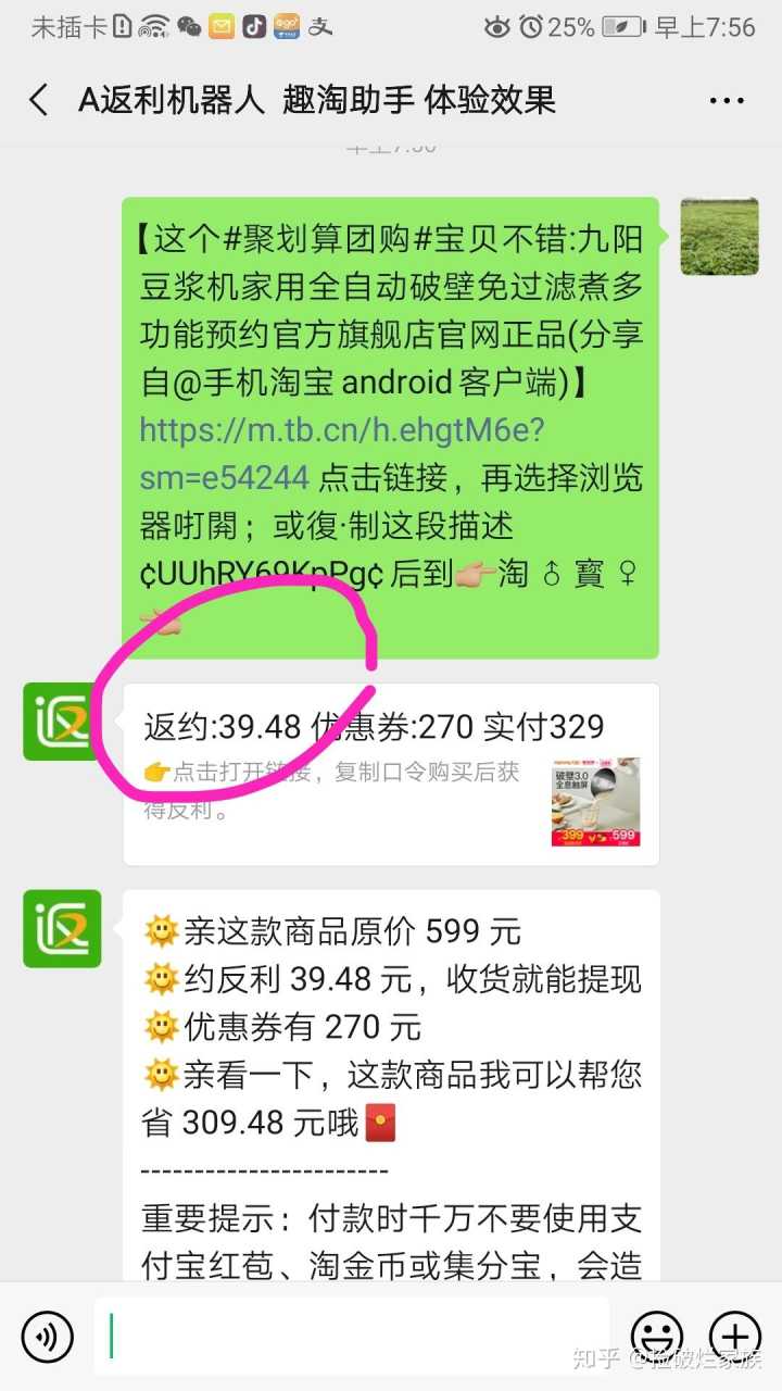 ③个人感觉返利机器人比公众号使用更省钱,因为公众号只有券,没有返利啊 机器人的话,想买啥直接甩个链接给机器人就可以了,不仅有隐形优惠券还有返利呢,特别方便。
