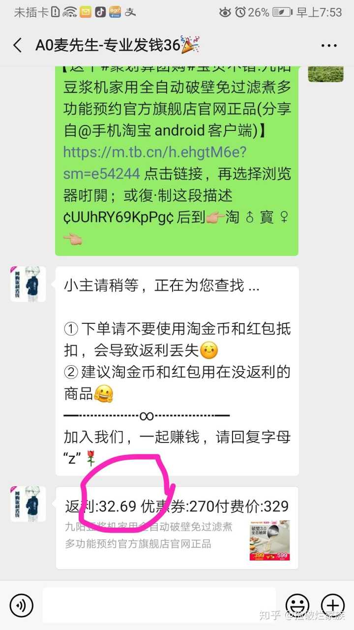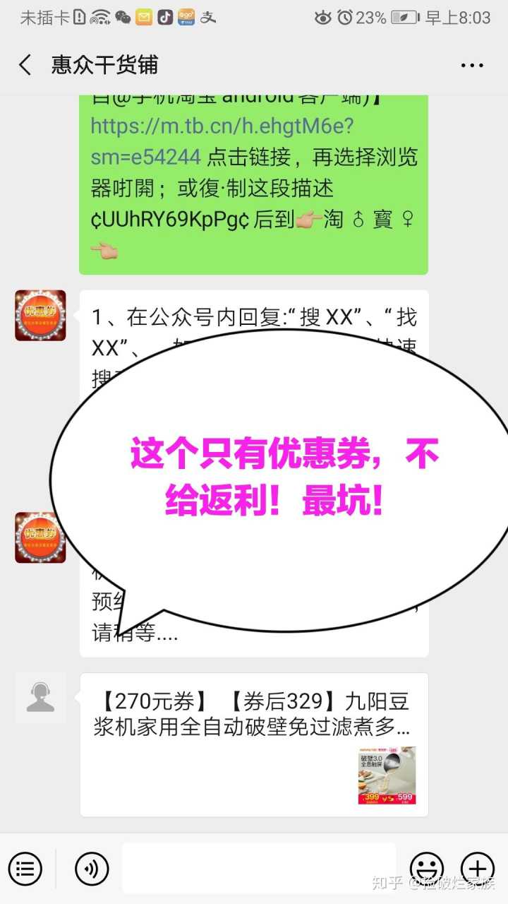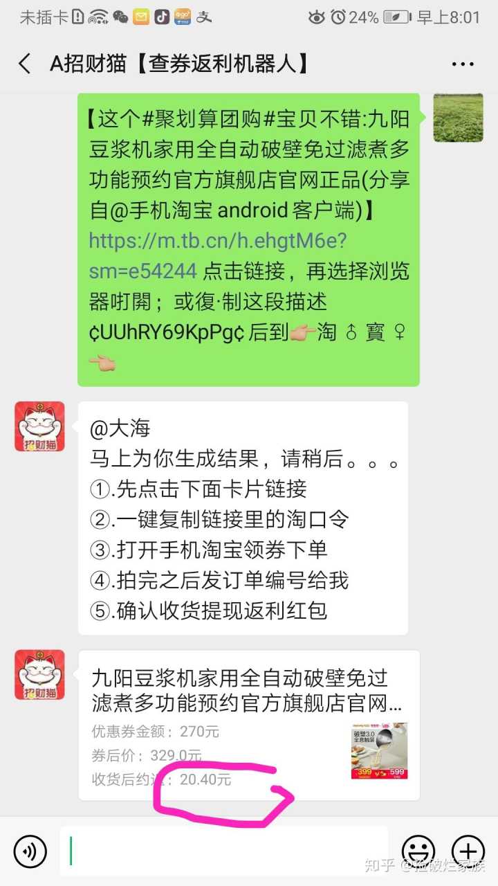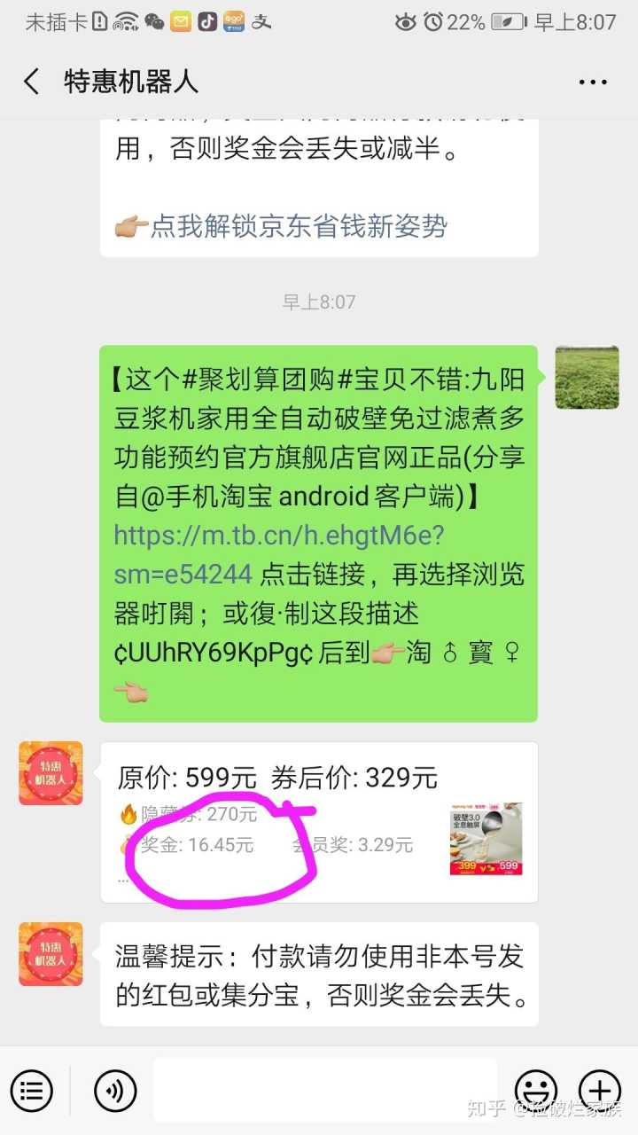 ③个人感觉返利机器人比公众号使用更省钱,因为公众号只有券,没有返利啊 机器人的话,想买啥直接甩个链接给机器人就可以了,不仅有隐形优惠券还有返利呢,特别方便。