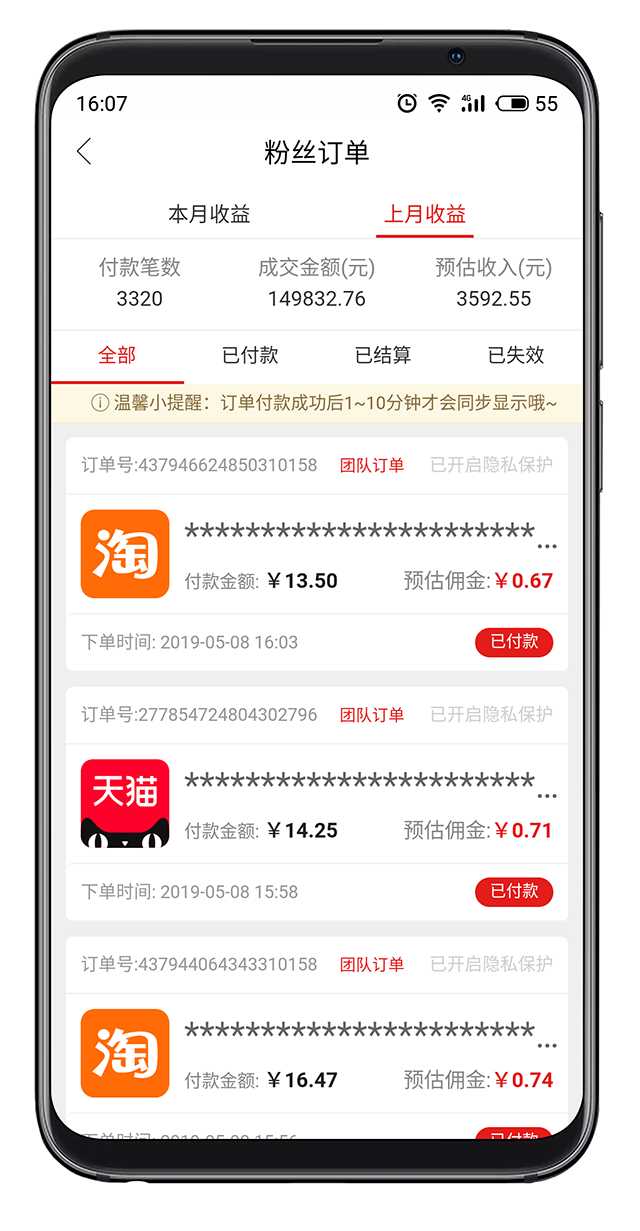 我这边其实做淘客好多年了。从2013年就开始接触淘客,从最开始的每个月赚几千元,然后到后来每个月赚几万,再到后来组建团队,月入几十万,到目前每个月佣金150万左右,其实每个阶段也都不容易。