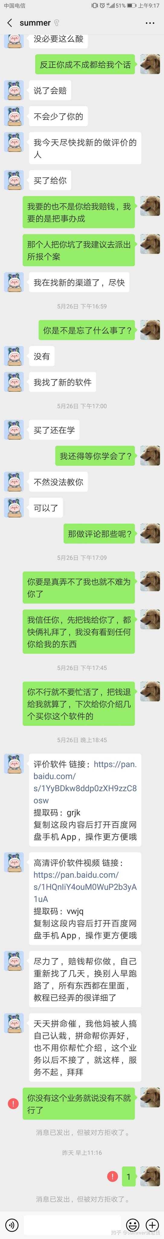 这个人最后给我发过来的软件就一个安装包,里面的账户跟密码还是要我来买,之前3个月的软件使用时间和300块钱一周的评价粉就更别说了,请大家擦亮眼睛,不要上当了