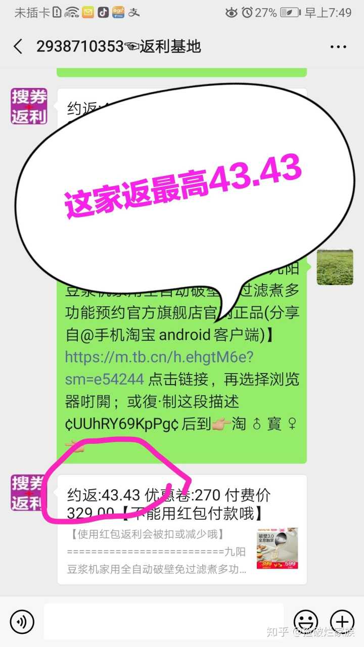最后这家返利最高,我现在用的,忍不住想给他打广告。在淘宝1分钱买的使用权。支持淘宝京东拼多多三个平台返利,1分钱返利都可以提现【其他机器人都有提现门槛,其他一般满3-10元返利才能提现】,老板发返利的时候,经常还发些搞笑图片,没事还和他斗图,有点好耍…