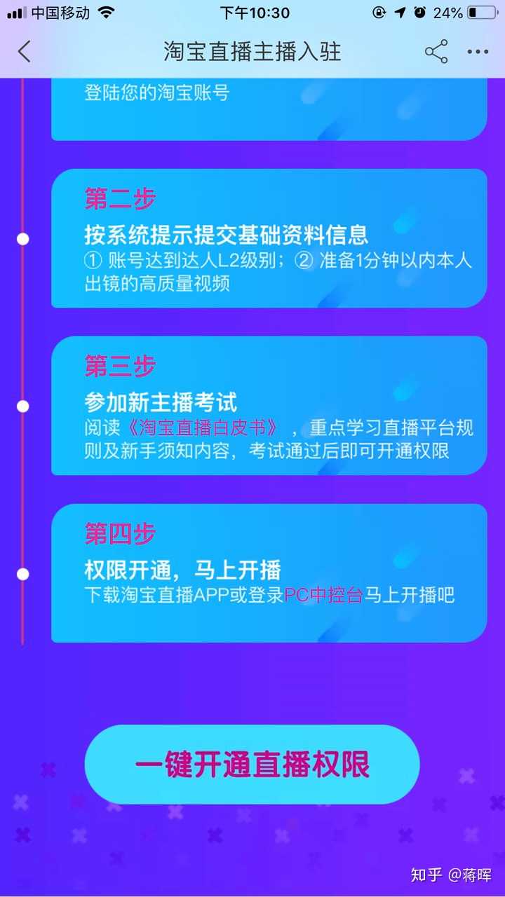 本人从事淘宝多年,对产品的介绍非常熟悉,想开通淘宝直播,怎奈开通无门,有木有大神回复下,在线等~