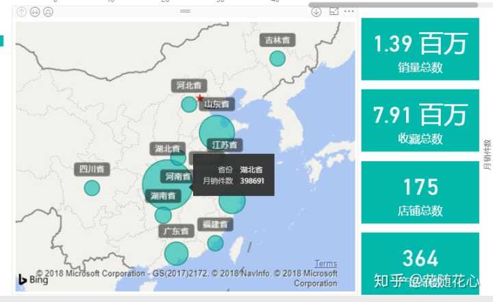 通过PBI自带的地图,我们可以快速知道究竟哪些省份的销量是最高的,由于文字不如图表直观,因此通过这里的地图透视出来的信息,我们可以在宏观上掌握不少资料。