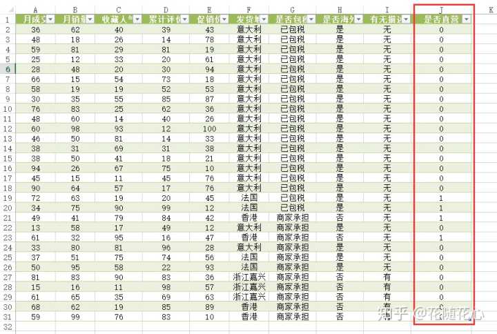 之后,我重新随机生成了一些数据进来,根据刚刚的说法,很快就可以判断出到底哪些新品是官方直营店的。这样子我们就学会了如何进行数据预判。