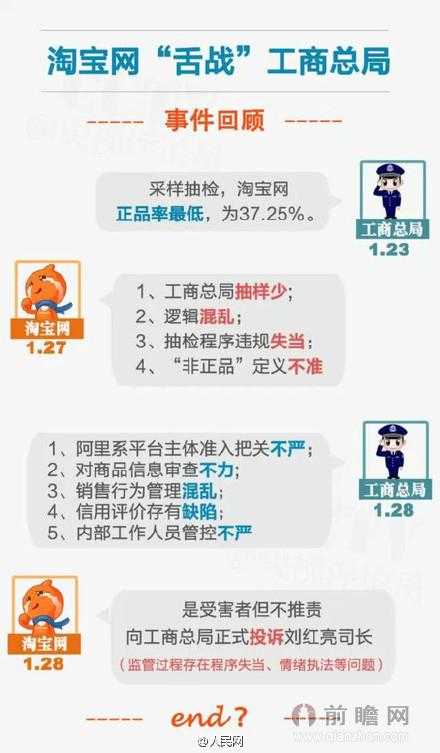 因国家工商局发布的这次监测结果,阿里巴巴(淘宝)PK国家工商总局(网络监管司)的进程大致如下: