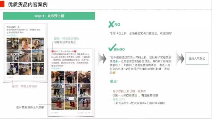 货品类内容:店铺上新或者是上新相关的内容类型,这个可以说是产品卖点的提炼,并且进行有吸引力的表达,是比较容易实现的。上新尽量提前一周预热。