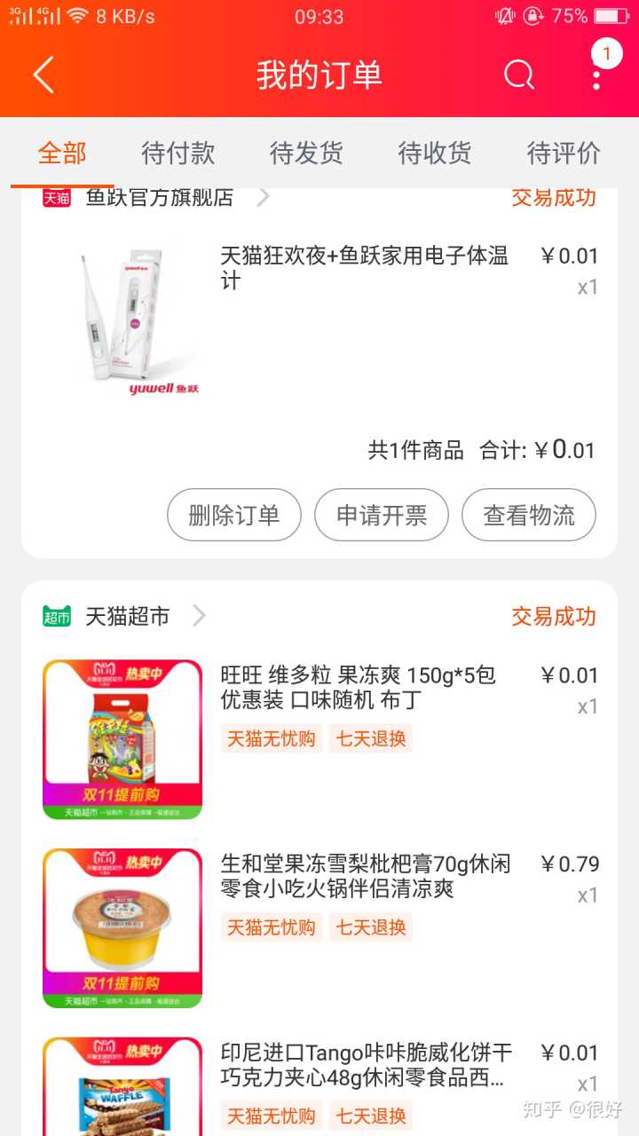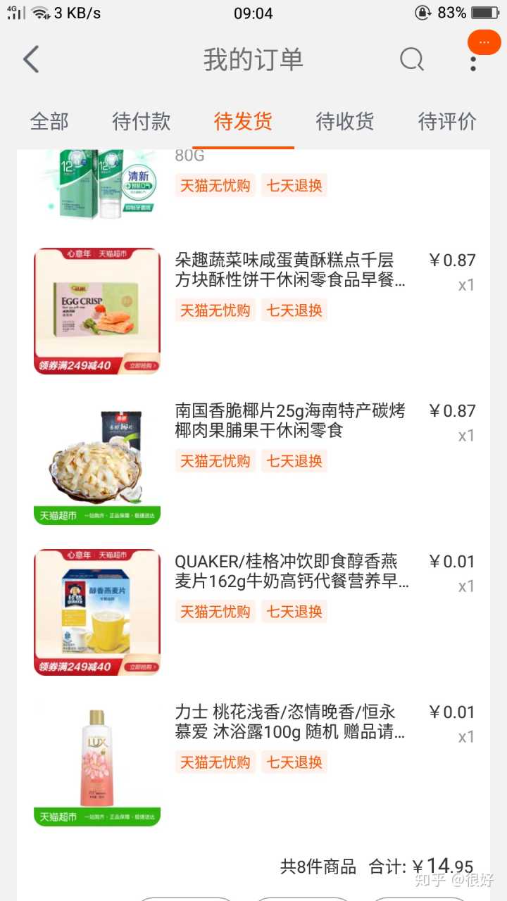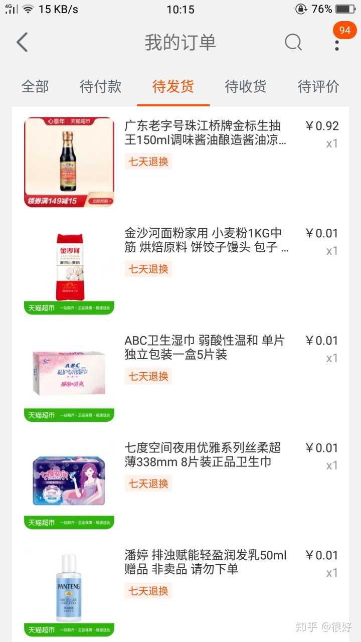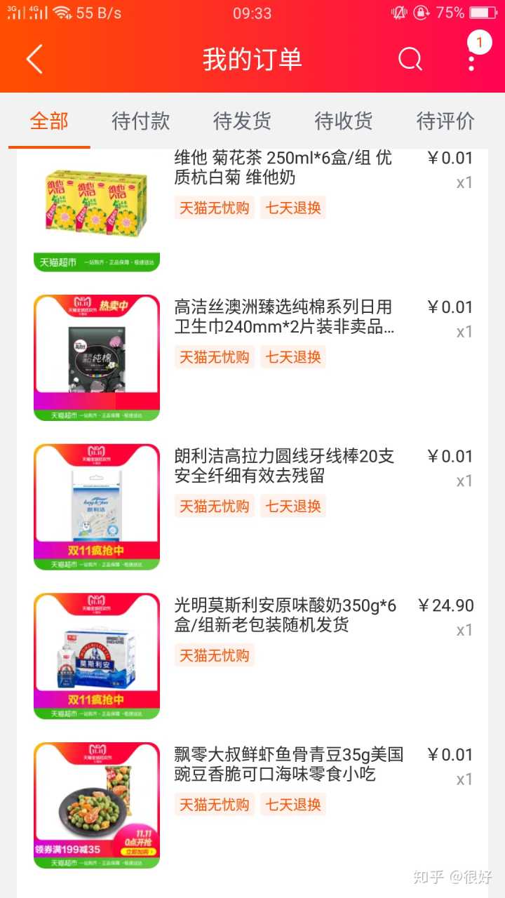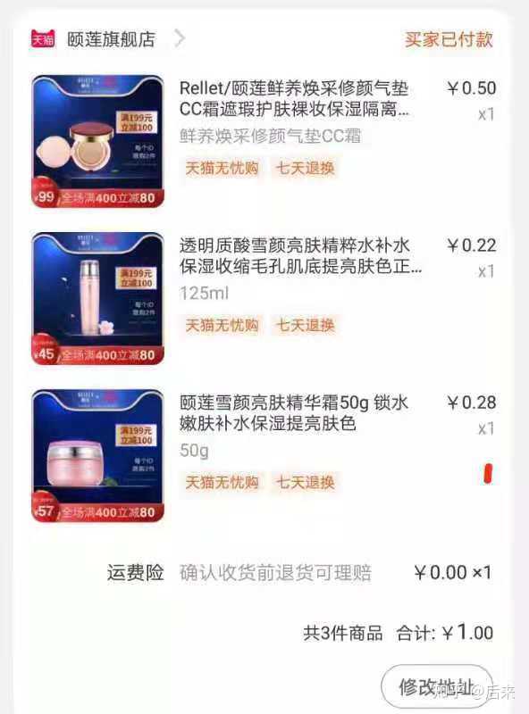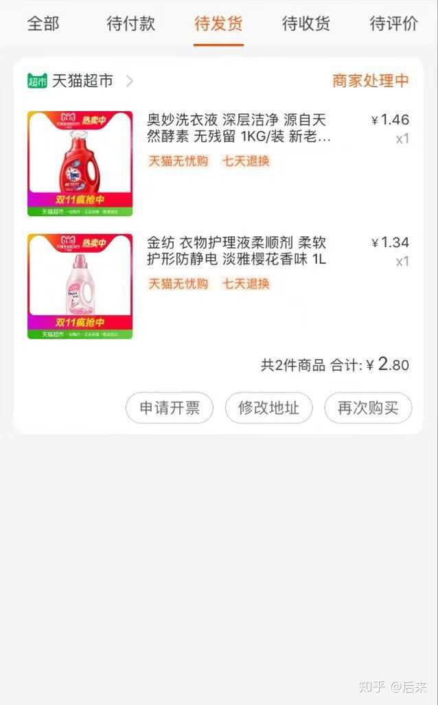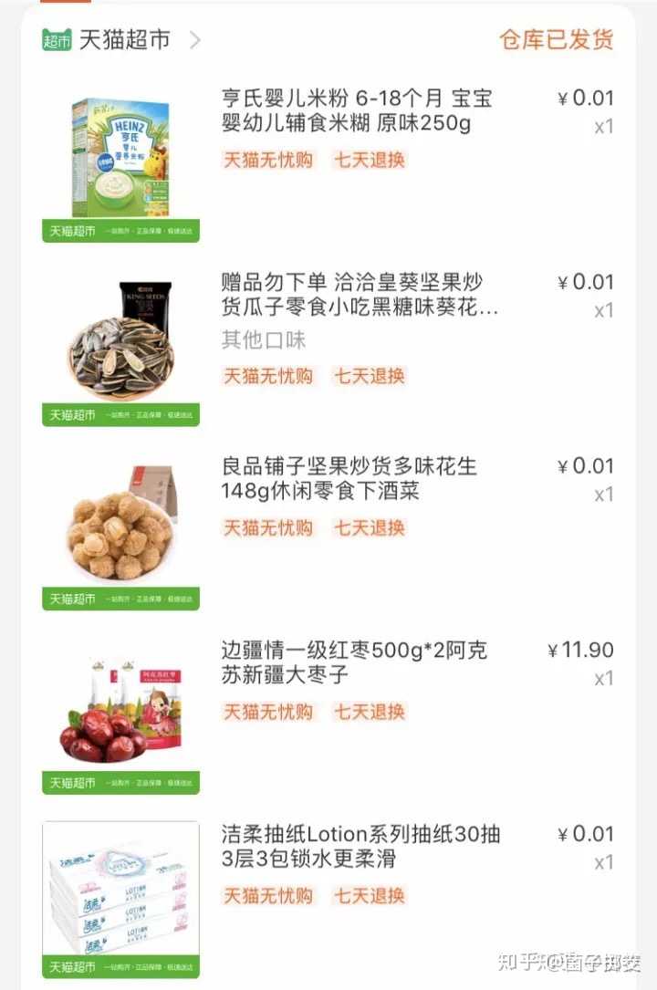 天猫的一分钱,随单发货