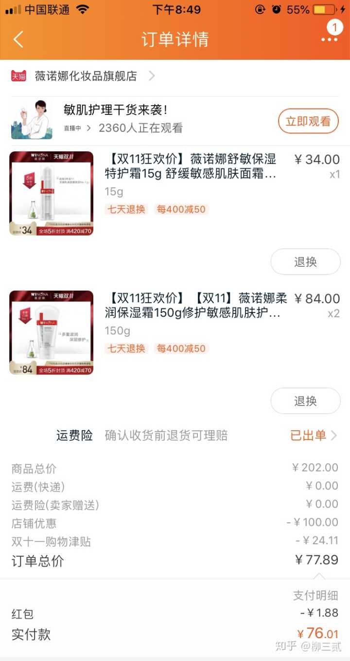 薇诺娜是真打折,是真的双11,每年这个时候才全场五折。去年买了保湿霜,大瓶好用,但一直没有活动,这次五折,赶紧囤了两支。