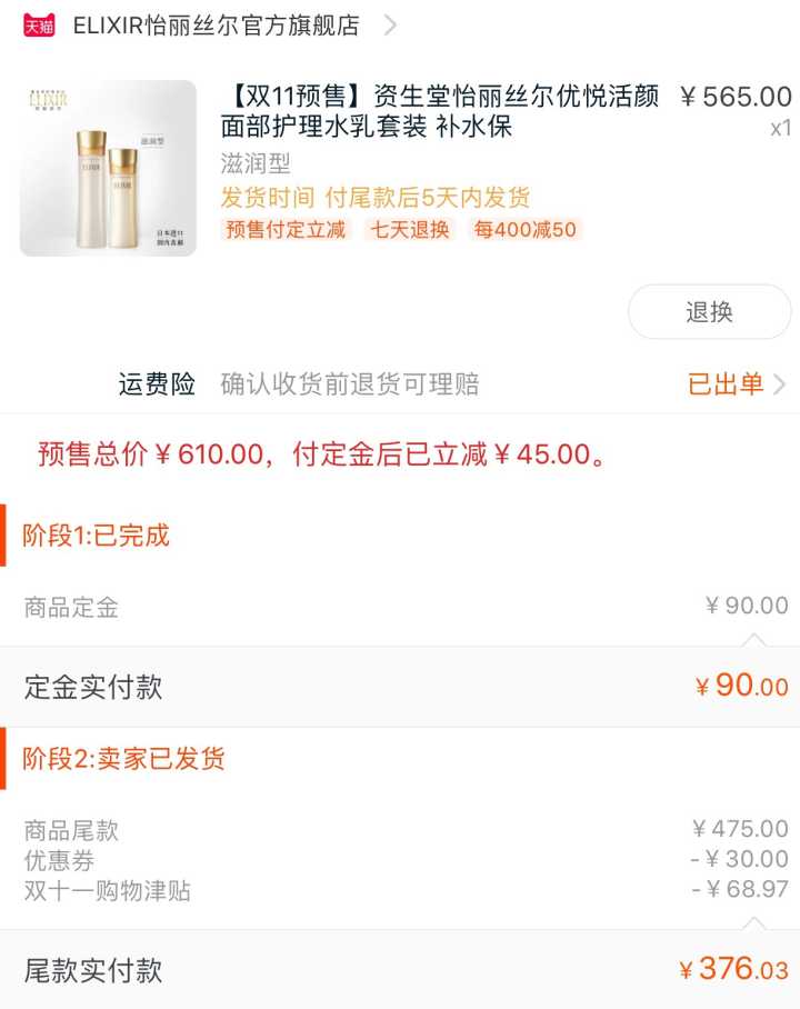 对比一下原价和双十一的价格