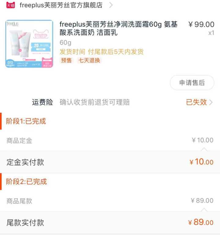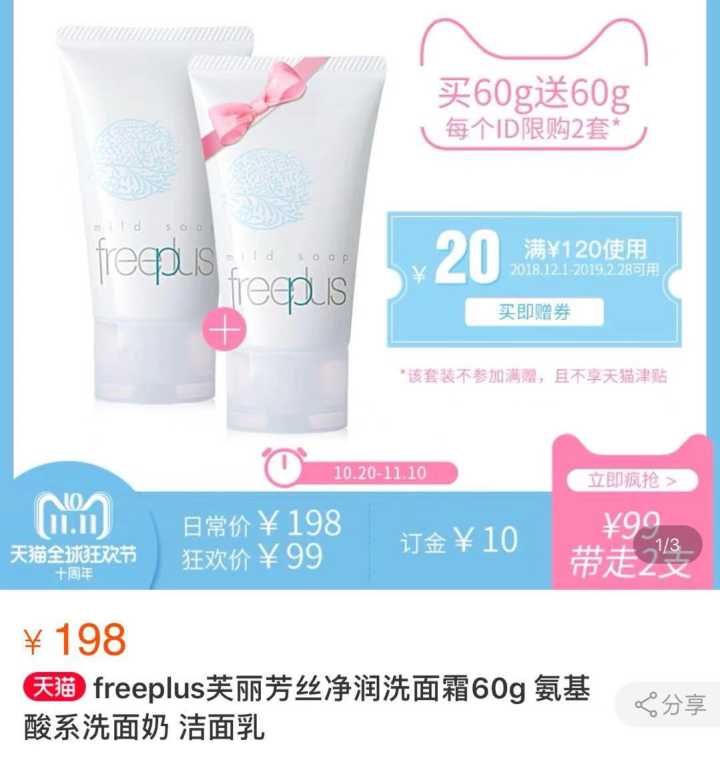 freeplus这个价格倒是没变过,一直99元
