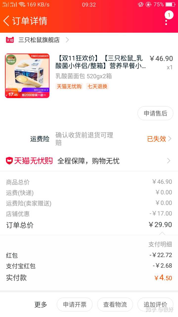 双十一购入价:72.52元