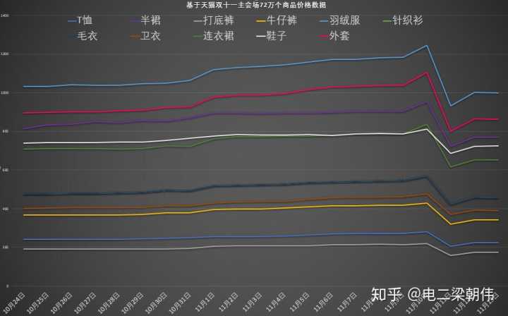 近在做双十一的数据分析,爬取了双十一服饰品共72万个商品180天的价格数据