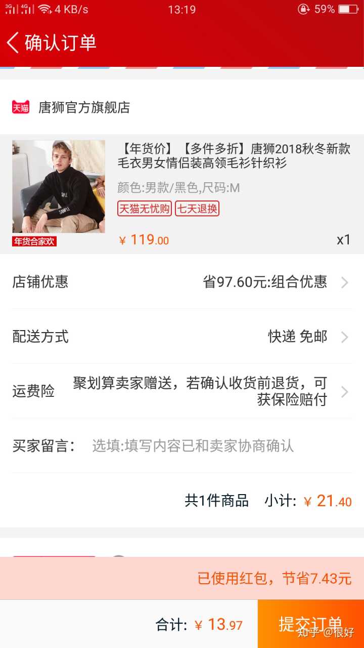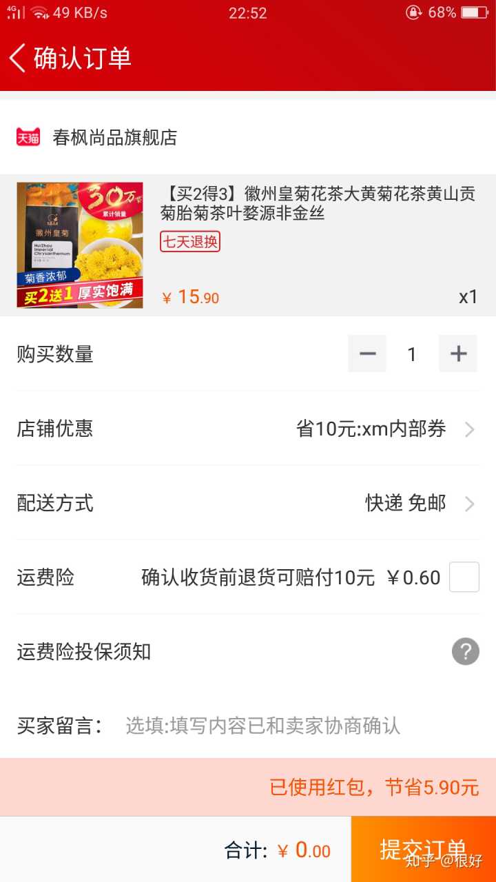 用了红包,不要钱