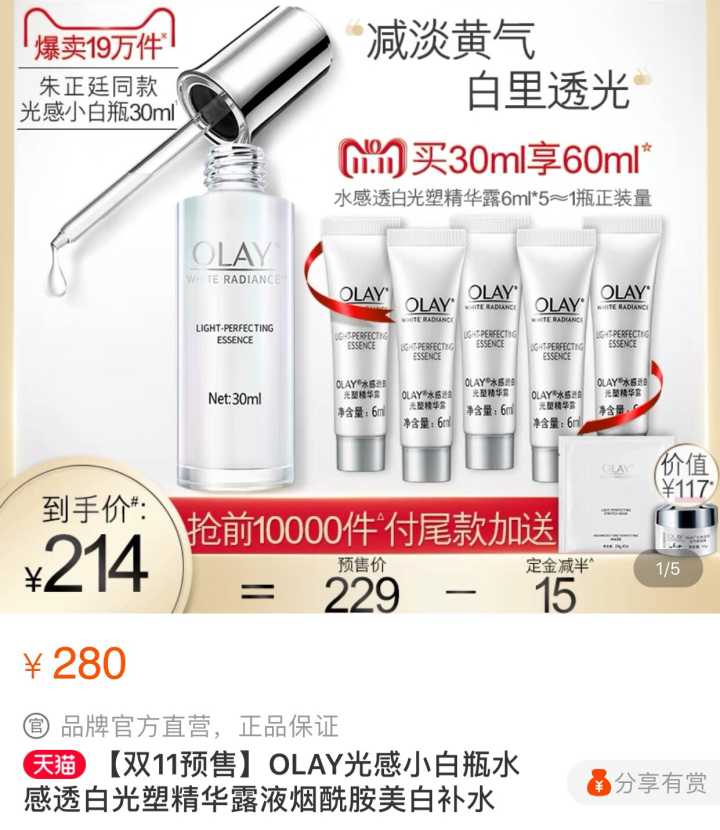 平价美白精华,双十一购入相当于买一送一