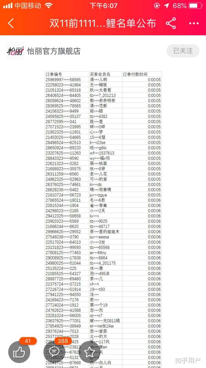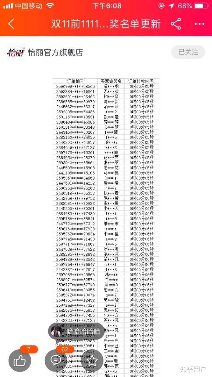 但有更多的消费者不知道自己应该在名单内,建议双十一购买怡丽的姐妹们如果付款时间在前一分钟,可以查看第一份名单,是否有类似的名字和订单号,用法律的武器维护自己的权益。