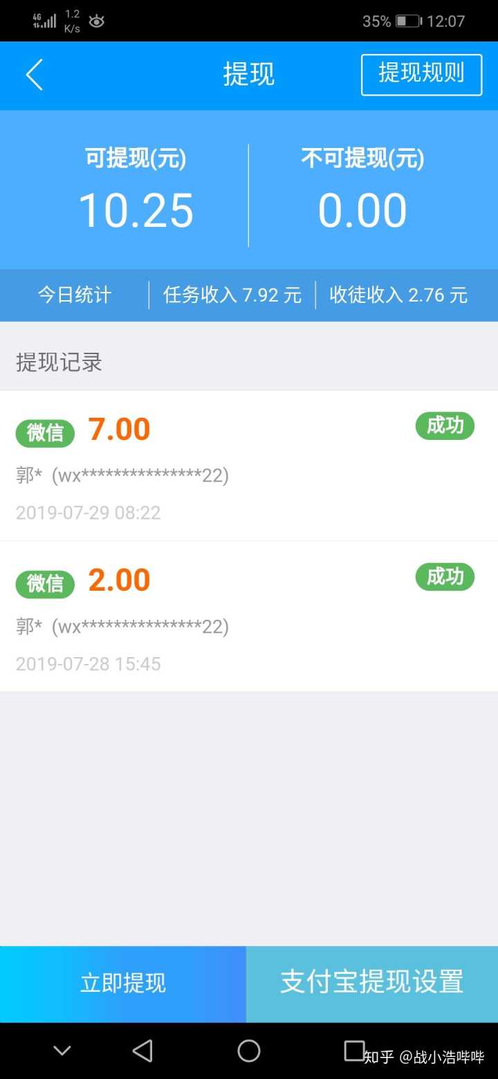 这个app是本人通过持续的下载尝试发现的比较好用的一类赚钱app。它与其他赚钱app来说一个很好的优点,就是攒够两元或两元之后都可以提现,而且任务方面并不是太难。关于转账类任务不要接,一元两元的任务很好做,如果运气好,七八元的任务几分钟就能完成,比如上图。下载方式放在下面,想赚零花钱的小伙伴们可以下载。