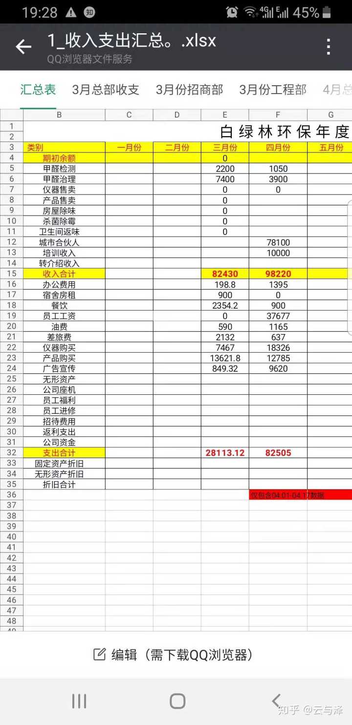 我被一家叫湖南白绿林环保科技有限公司的骗了,什么半年营业100万,有一次他们不小心把他公司的财务表发到加盟群,我发给各位看官看看。