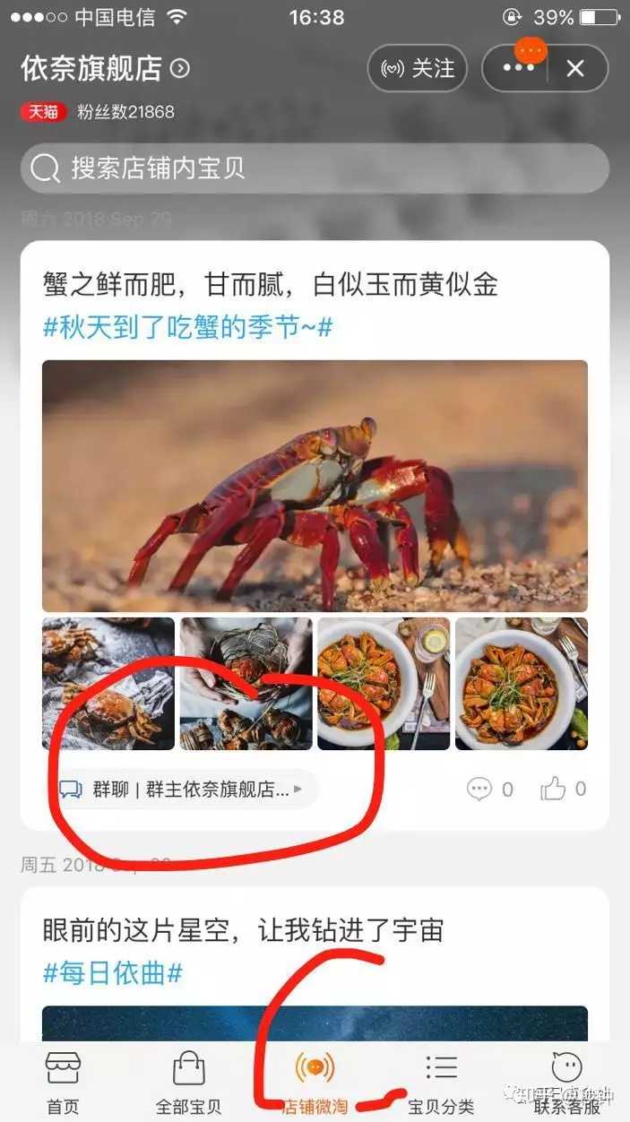 卖家的手淘群,这种群维护是十分苦难的,进去也很简单的,在每个店铺的微淘里面