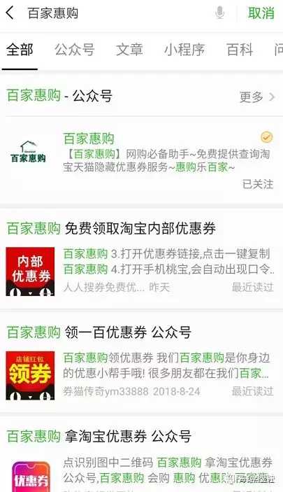 比方说我们要截流这个公众号, 那么我们的订阅号名称可以更换成百家惠购领券 优惠券 领券官网 福利官网等等