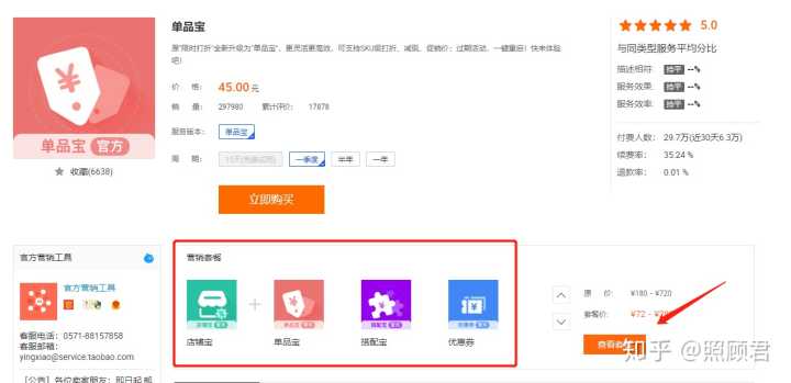 随便点击一个软件,比如单品宝,在定购页面的下方: