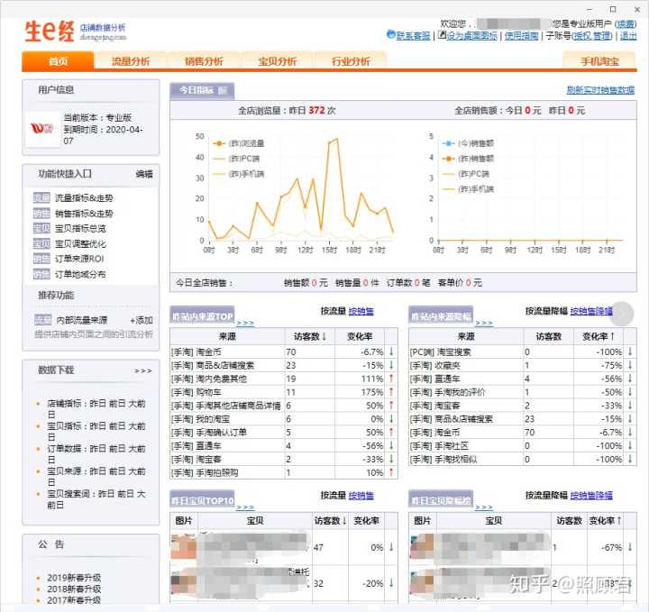 淘宝服务市场的第三方数据工具,也是老牌的一款数据产品,数据来源都来自于淘宝官方。但是生意经提供更多维度的数据,细致到每个产品的每个渠道。另外生意经的数据永久保存,不会像生意参谋只有最近三个月的数据。所以如果对数据需求量比较大,可以选择生意参谋。一般大商家都会订购,小商家就算了,帮助不会非常大。