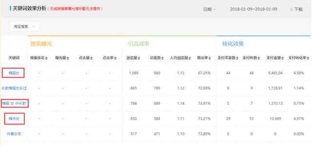 根据我上面讲到的搜索的原理,我们想要拿到大流量,就要拿到大词的权重,只有得到大词的权重,才可以爆发更多的流量。我们通过给棉衣女及其相关的关键词通过多次转化提升权重,使这个词的权重得到快速拉升。