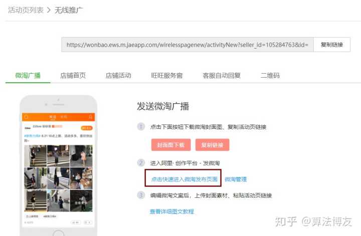 B.选择发送微淘广播,将活动信息发布到微淘中。