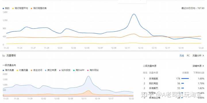 (1)自然流量:店铺里面自然流量永远都是占据主导地位,可以说咱们做付费流量也好,做自然搜索也好,都是为了自然流量能够得到提升,为什么说现在销量提升的手段效果越来越差,主要也是没办法带动自然搜索的提升,因为现在销量的权重也很低了。