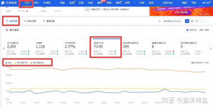 步骤1:查看自己店铺最近30天客单价是否低于行业均值(查看入口:生意参谋首页—运营视窗)