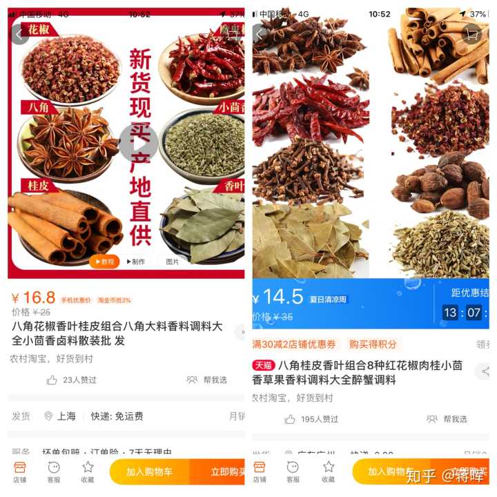 上面的两家卖的都是调味食品,价格相差不大,但是就卖点塑造来说,左边图更容易抓住某一类客户的痛点,吸引眼球。