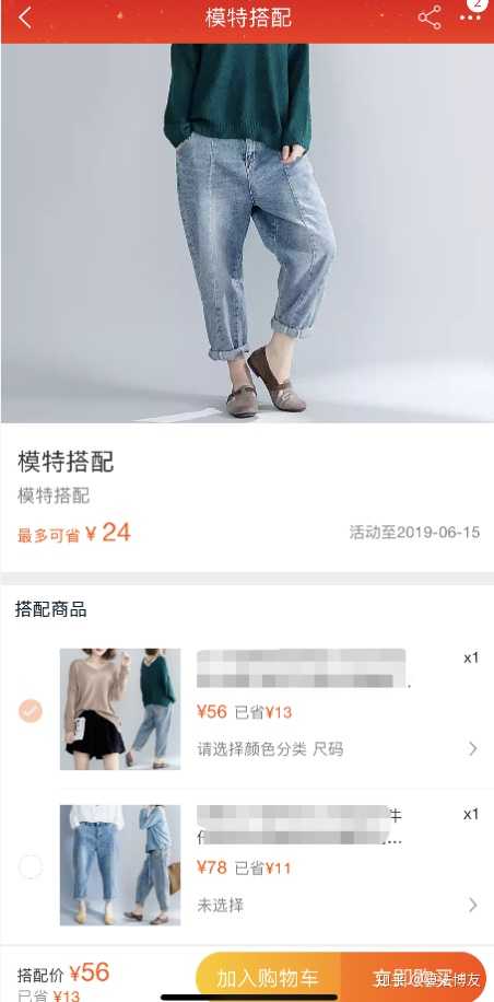 当买家点击进入模特搭配之后,可以看到这款单品搭配购买的降价幅度,当买家两件同时购买的时候可以直接提升客单价,这也是我们设置搭配推荐之后的实际效果。