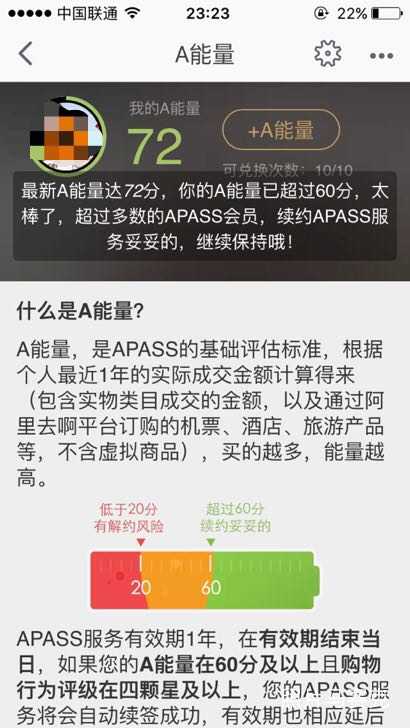 点进去后,就是会员中心,会显示你的积分以及差多少分可以收到APASS的邀请,比如我就是差632分: